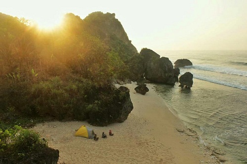Menyambut matahari di ufuk timur memang paling tepat dengan ber- wisata pantai Jogja di Pringjono, Gunung Kidul. Sebuah pantai dengan pesona alam yang istimewa, apalagi suasana pagi seperti ini yang pastinya bikin iri banyak orang karena biasanya jam segini masih pada molor di kasur.